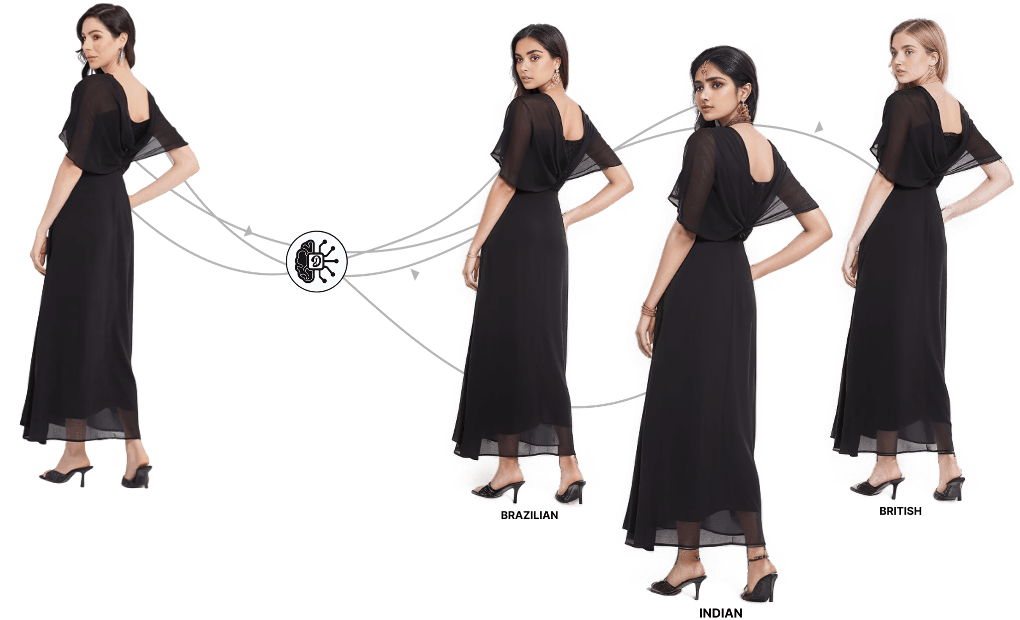Add captivating models of any ethnicity to garment photos at 10x more cost effective pricing than studios
