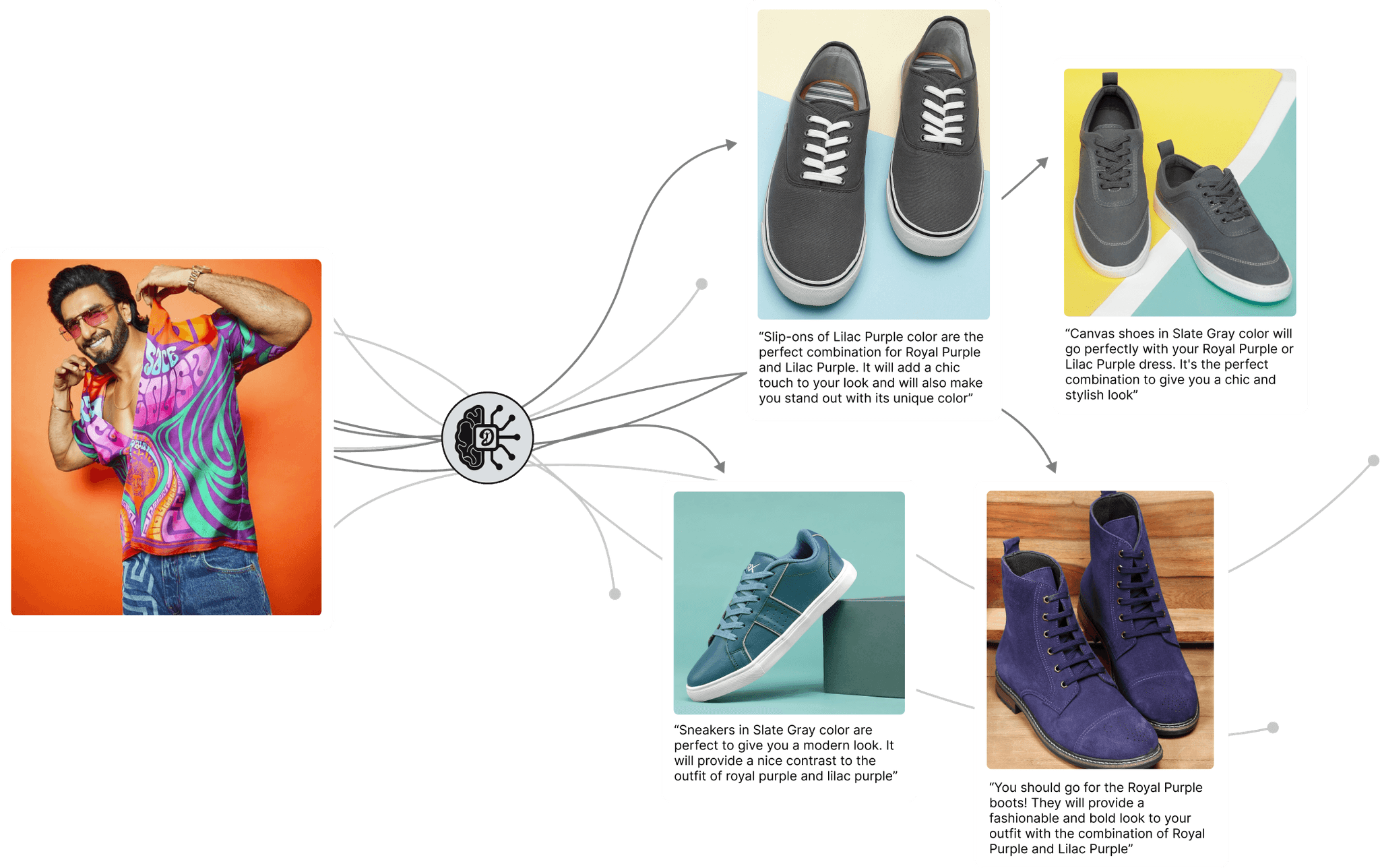 Elevate your fashion game with our footwear recommendations based on your outfit. Our AI-powered system analyzes your ensemble and suggests stylish shoes to complete your look flawlessly